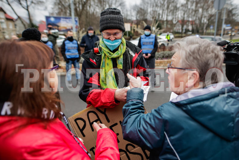 15.01.2022 Turow: 15 stycznia 2022 r. W centrum Bogatyni odbyl sie protest w sprawie zamkniecia polskiej kopalni Turow. Byla to inicjatywa Extinction Rebellion Czechy, Extinction Rebellion Deutchland i Extinction Rebellion Polska. n/z protest pod Urzędem miejskim w Bogatyni Fot: Krzysztof Zatycki/Photosello